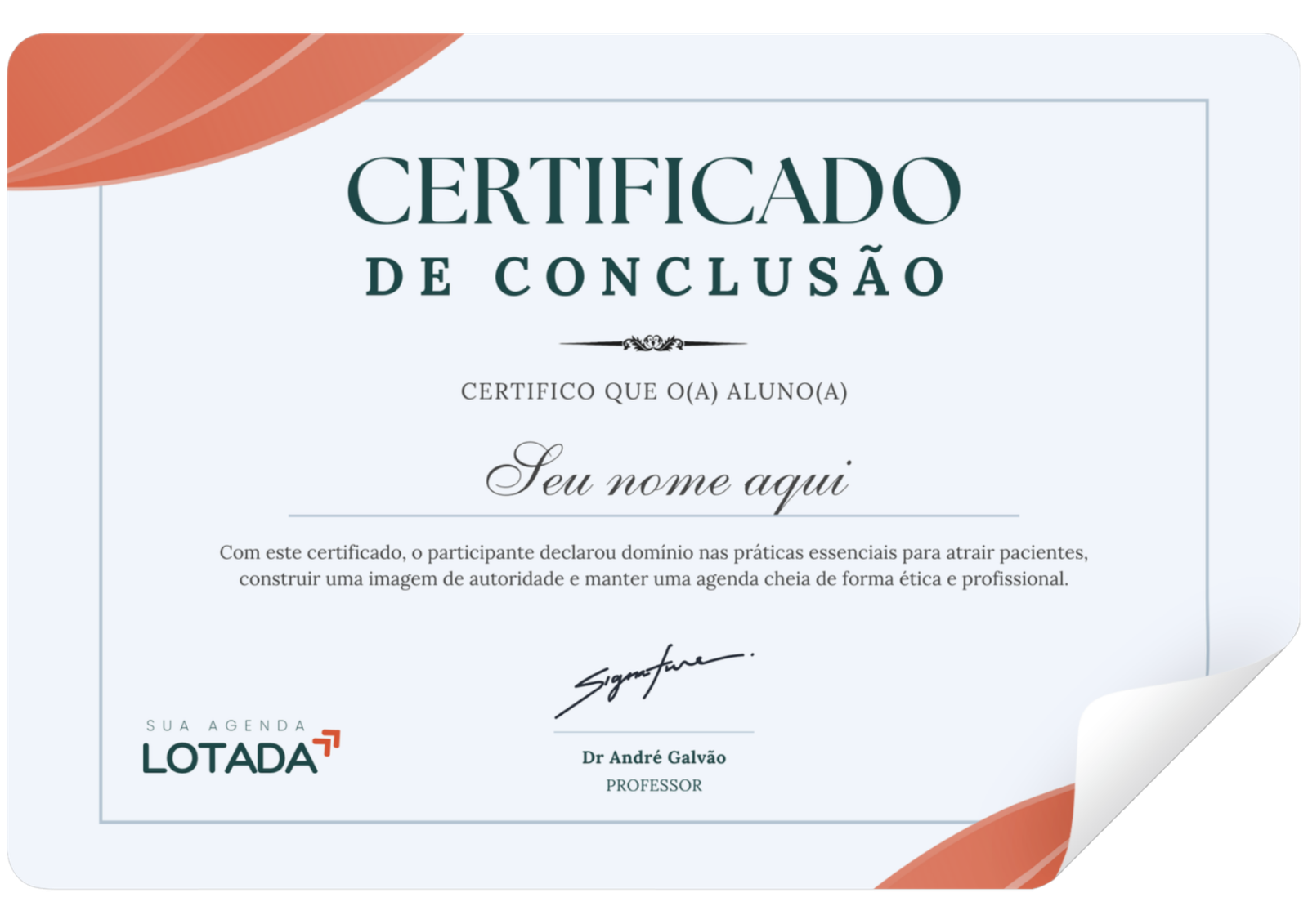 Ao finalizar o curso “Sua Agenda Lotada” , você receberá um certificado de conclusão que comprova seu aprendizado e dedicação.